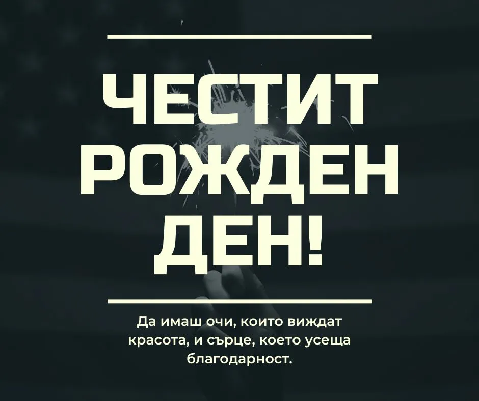 Пожелавам ти късмет, който не свършва, и енергия, която не угасва. Нека всяка твоя стъпка бъде уверена и смела, защото успехът обича хората с големи сърца.