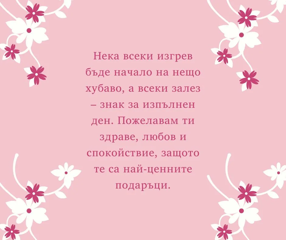 Класическите пожелания никога не излизат от мода. Те са израз на уважение, топлина и добро чувство. Подходящи са за всеки човек – близък, колега или приятел. Ето шест елегантни текста, които носят радост и светлина.