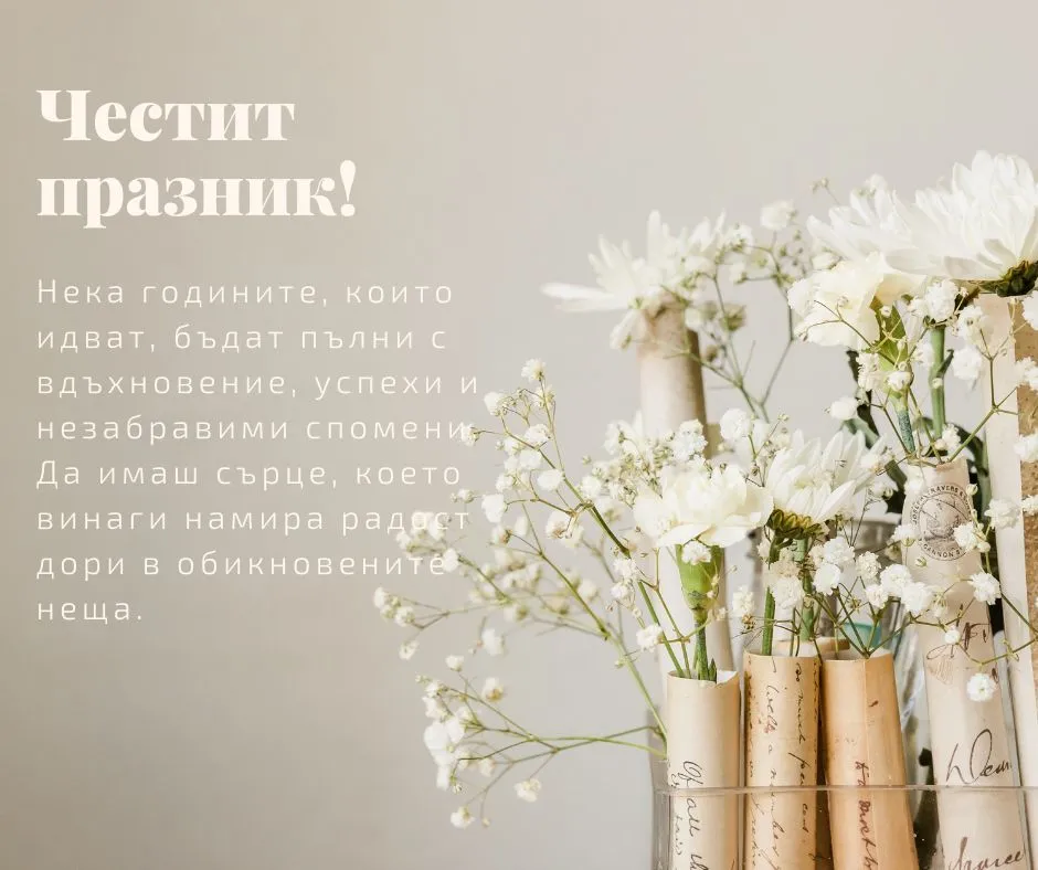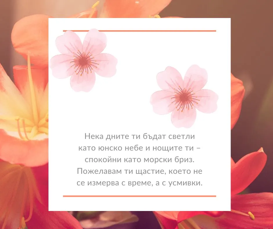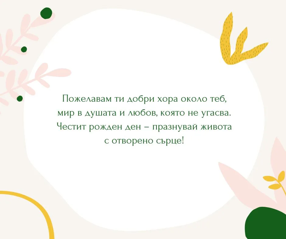 Тези пожелания са създадени, за да вдъхновяват, развеселяват и топлят сърца. Можеш да ги използваш в картички, съобщения, публикации или като поздрав лично. Избери пожелание според характера на човека – класическо, забавно или вдъхновяващо. Добави личен акцент – име, спомен или емоция.